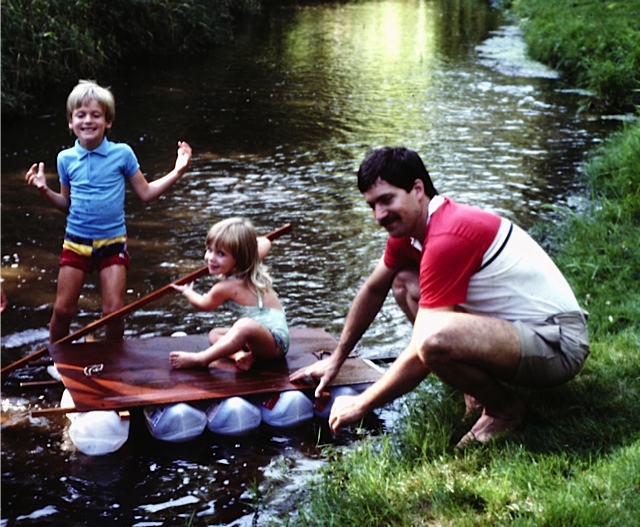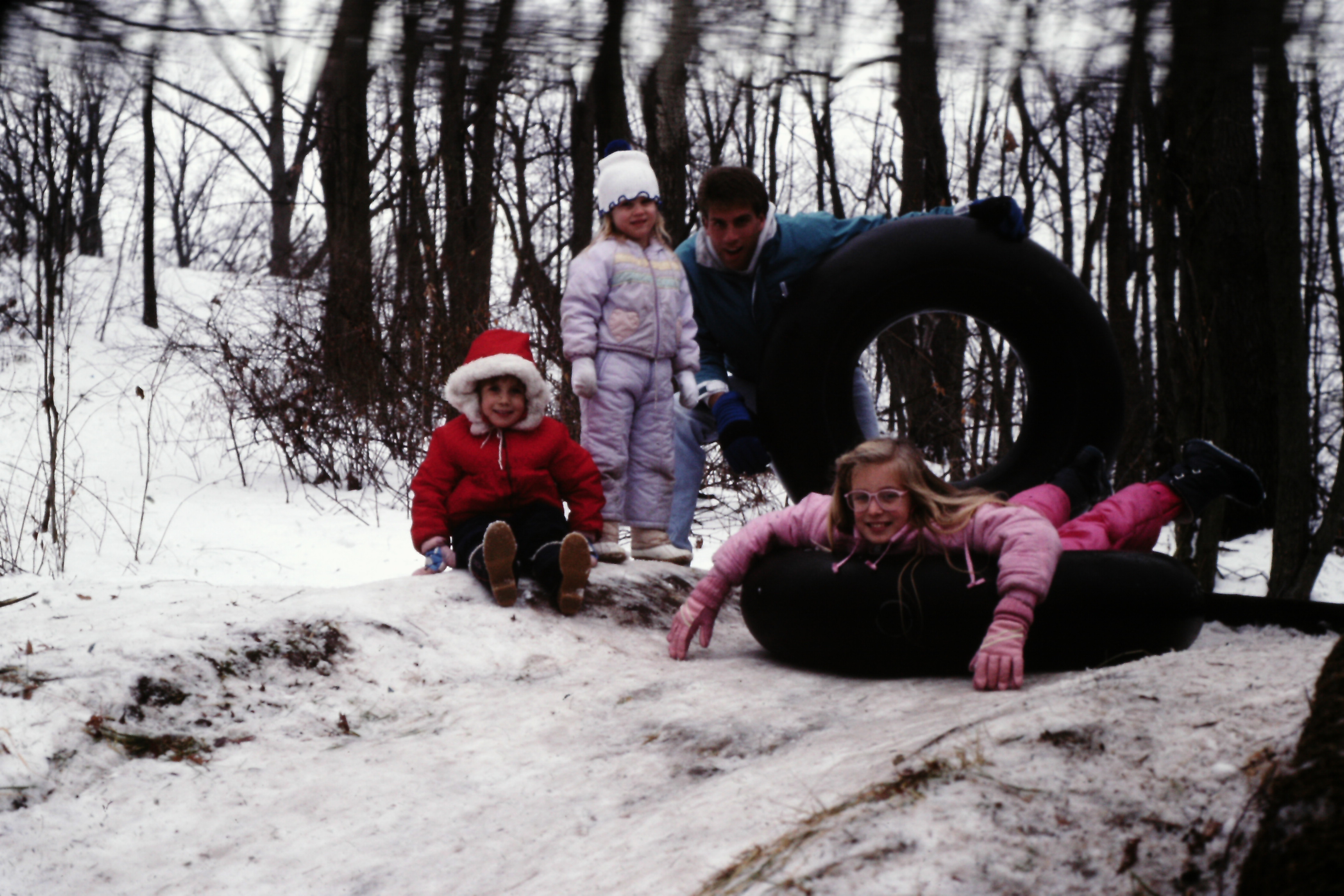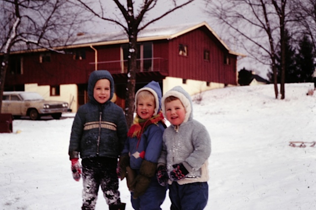 John Peebles and my sister Anne Crist at the work site with three boys.
