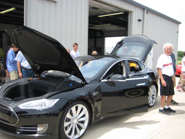 I got in the electric-drive Tesla coupe behind Joe and Dan Liechty, and after a few miles headed out in the country, I asked if I could drive her on the way home. The Tesla was reported to go 0-60 mph, faster than a Corvette. Also, since it has a low center of gravity with the batteries under the floor, it was supposed to handle like a Porsche. Being a man of science, I am not one to idly accept assertion without the evidence from testing.