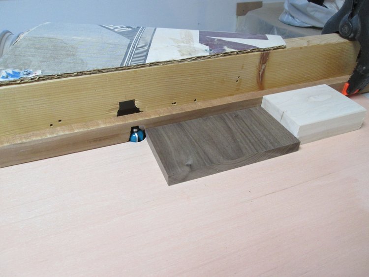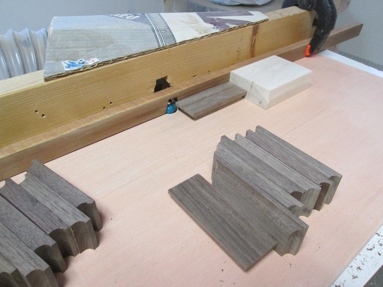 The next step was making the slat bases. Small parts can be dangerous and hard to hold, and the end grain easy to chip out. So, I started routing the end profile of a wide block first, which will become four individual bases.