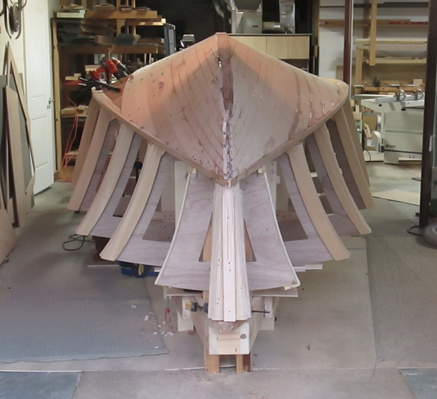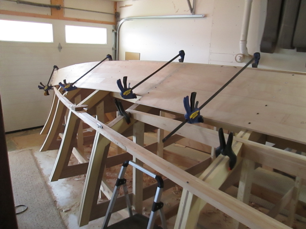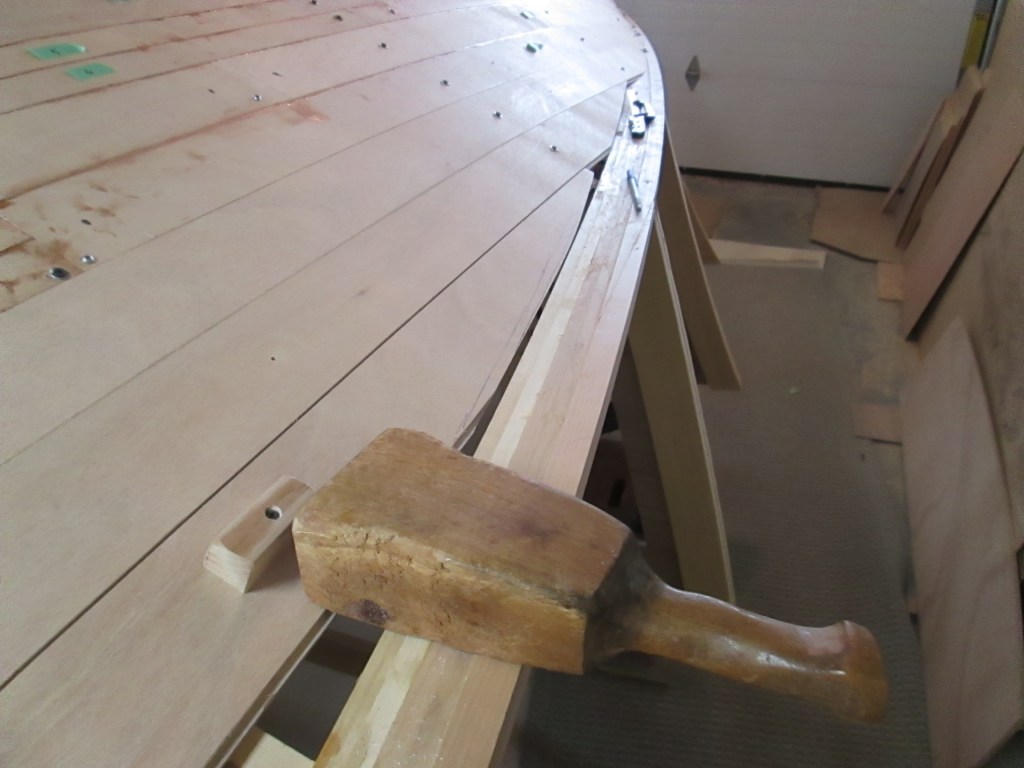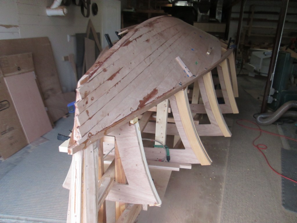 Next up, some fairing, a second layer of thinner plywood, and paint before turning the boat over for phase two!