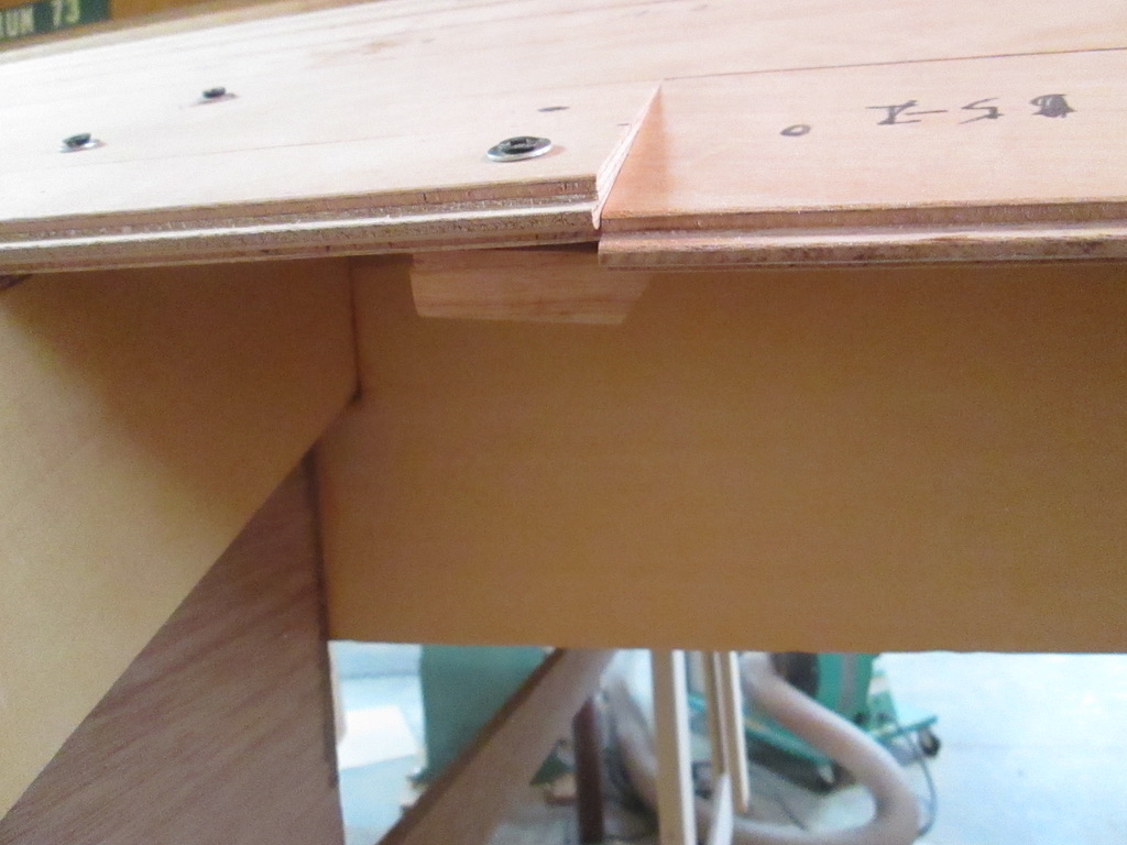 Below, the bottom plank was angled out too much, so the saw was used to cut through the contact point, so the wood block could push the bottom part inward. The clamp and screw with a large washer are used to hold it solid when the epoxy is added.