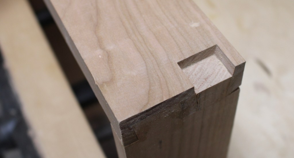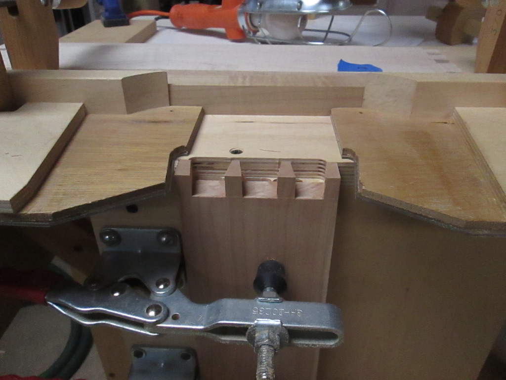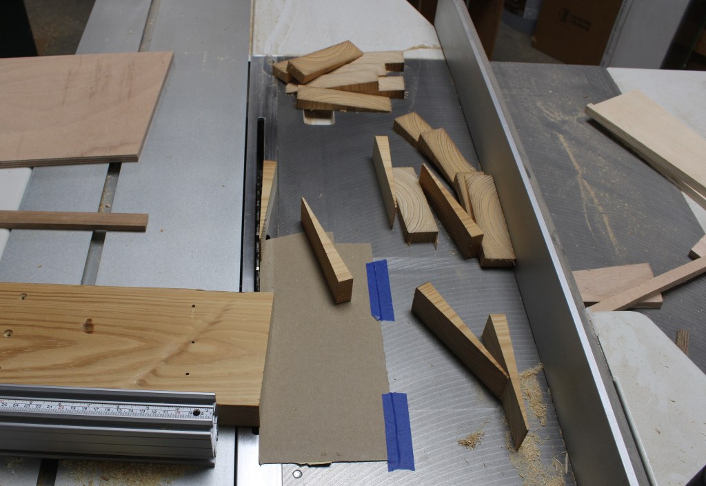 Since the middle wall was slanted out, in the way that looked best to me, I had to make some perfectly angled wedges to glue in the gap.