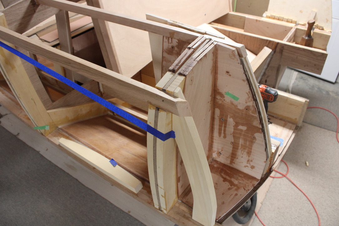 More plywood layers were added on the inside and out, connecting the top and bottom to make a strong outer panel. They are bonded with epoxy which is very tough and does a better job of filling gaps than most other glues.