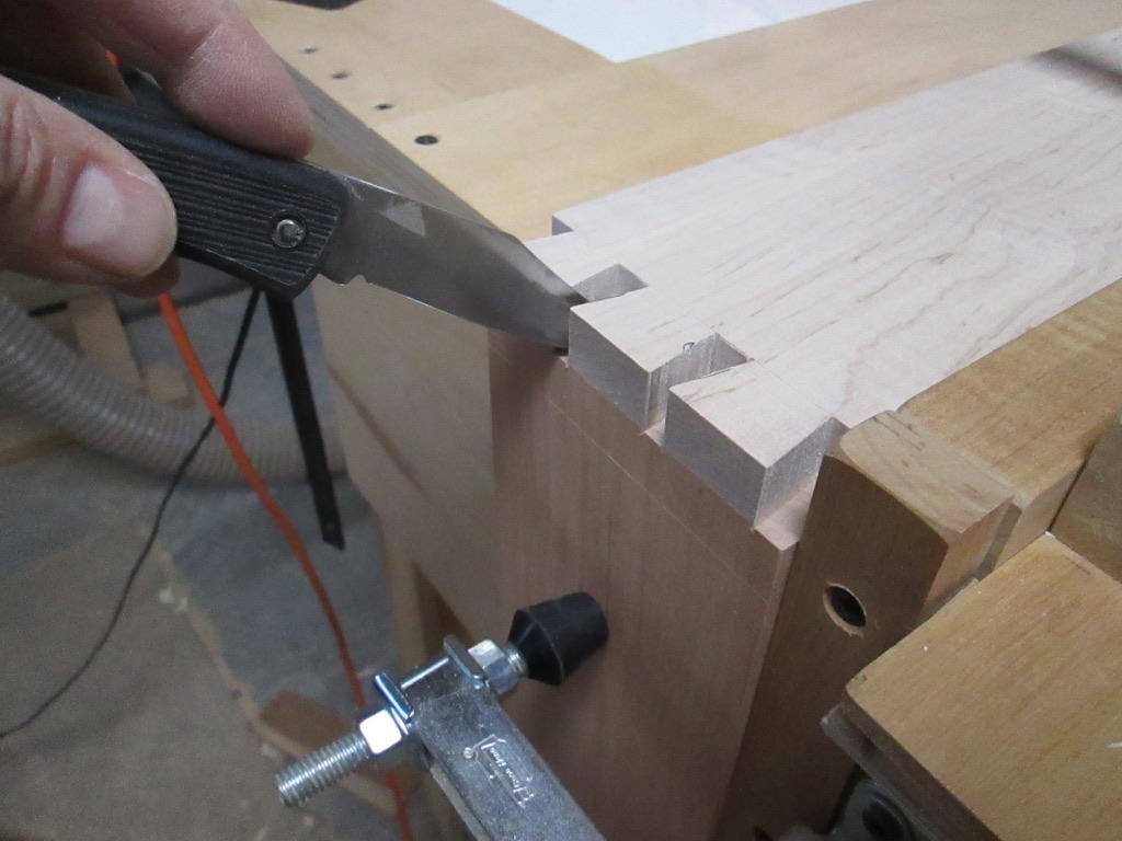 Since the middle wall was slanted out, in the way that looked best to me, I had to make some perfectly angled wedges to glue in the gap.