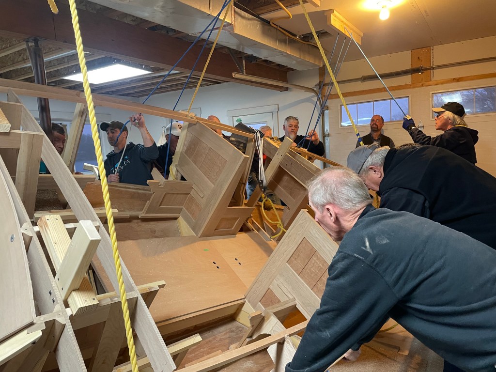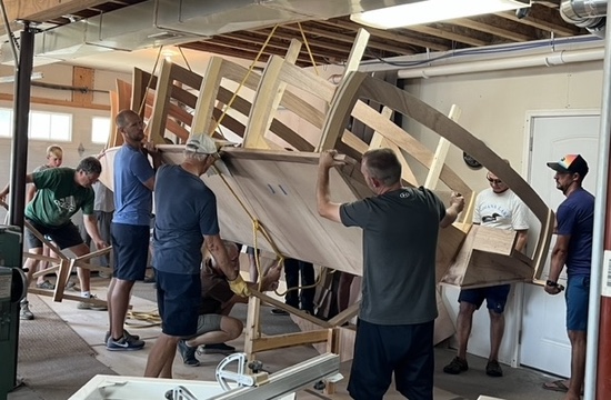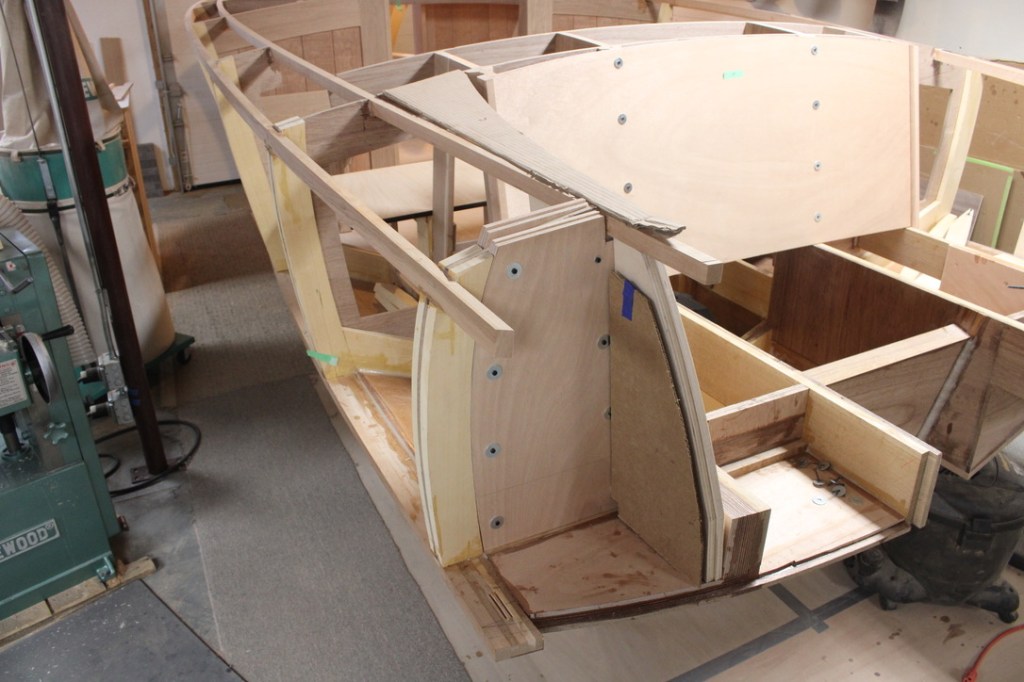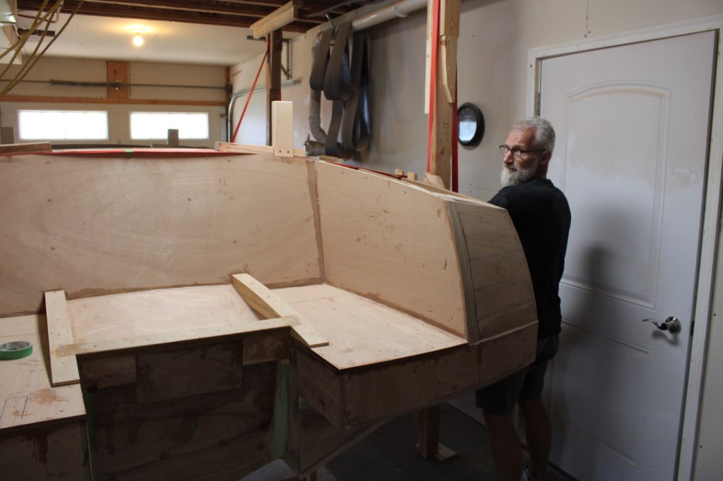 After that, I built out the stern extensions at the back, finished the side planks and added more interior framework. This added more weight than we anticipated. Jeff Margush adds his thoughts . . .