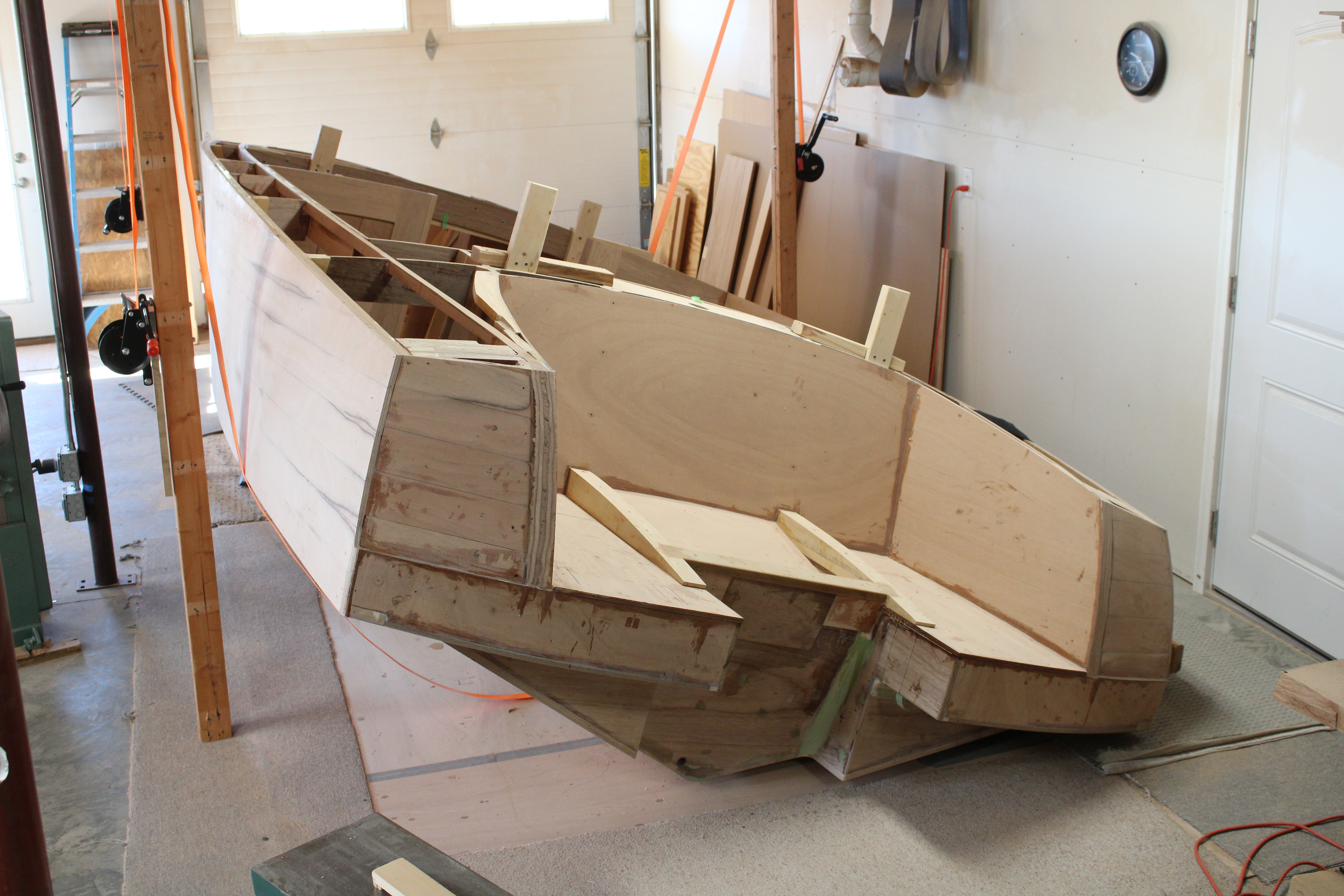 Getting the boat out of the basement was a pretty tight challenge, but finally made it.