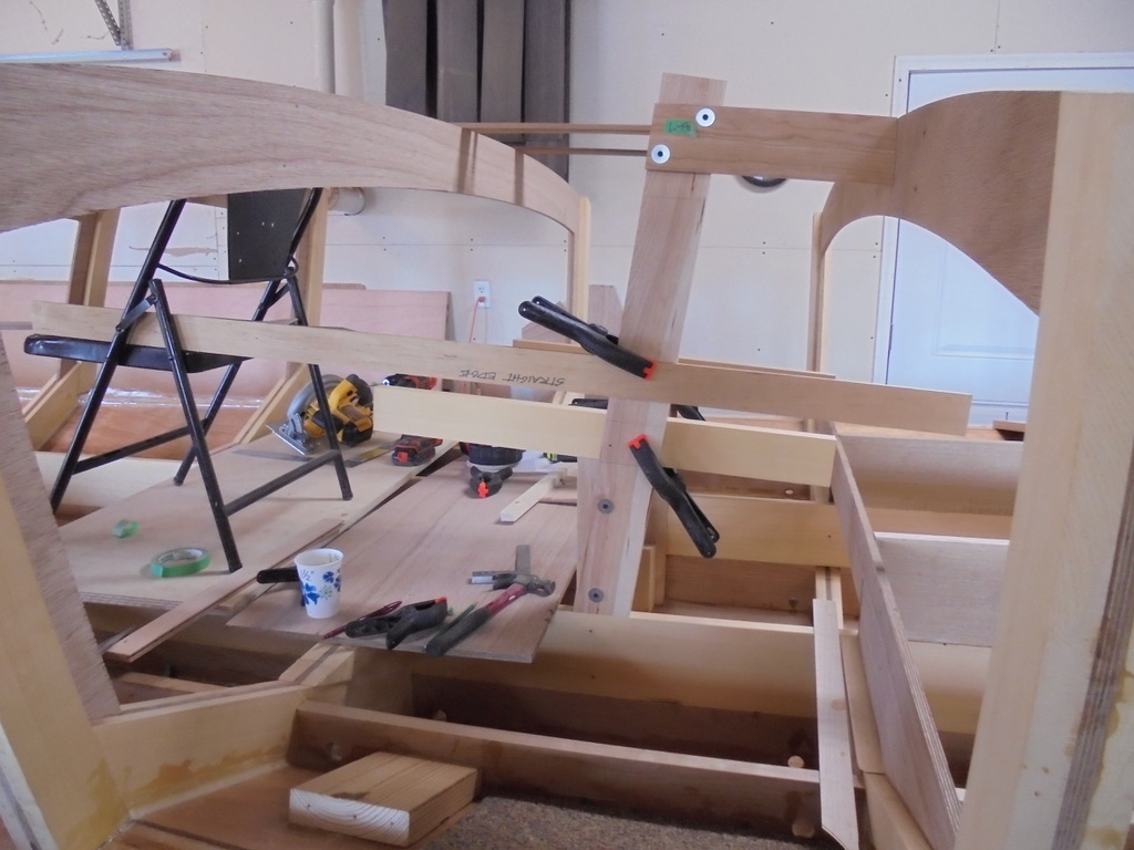 The stub cross frame now has five half inch marine plywood layers, and the longitudinal panel has three layers.
