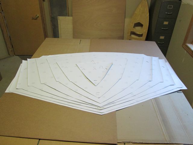 Full scale patterns made of some sort of vinyl paper, used to build cross frames.