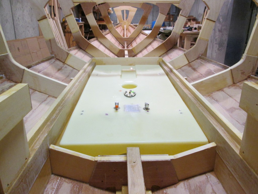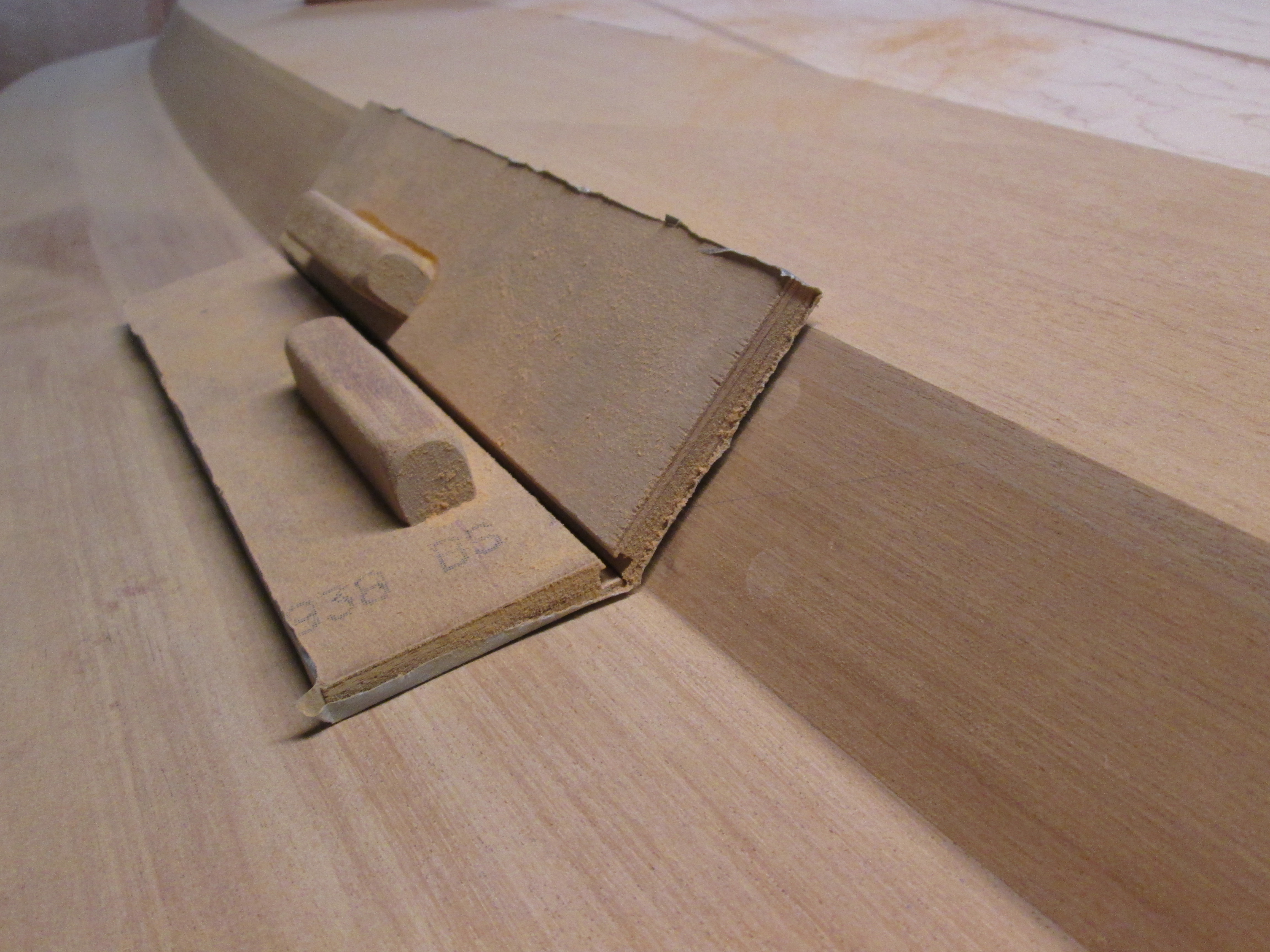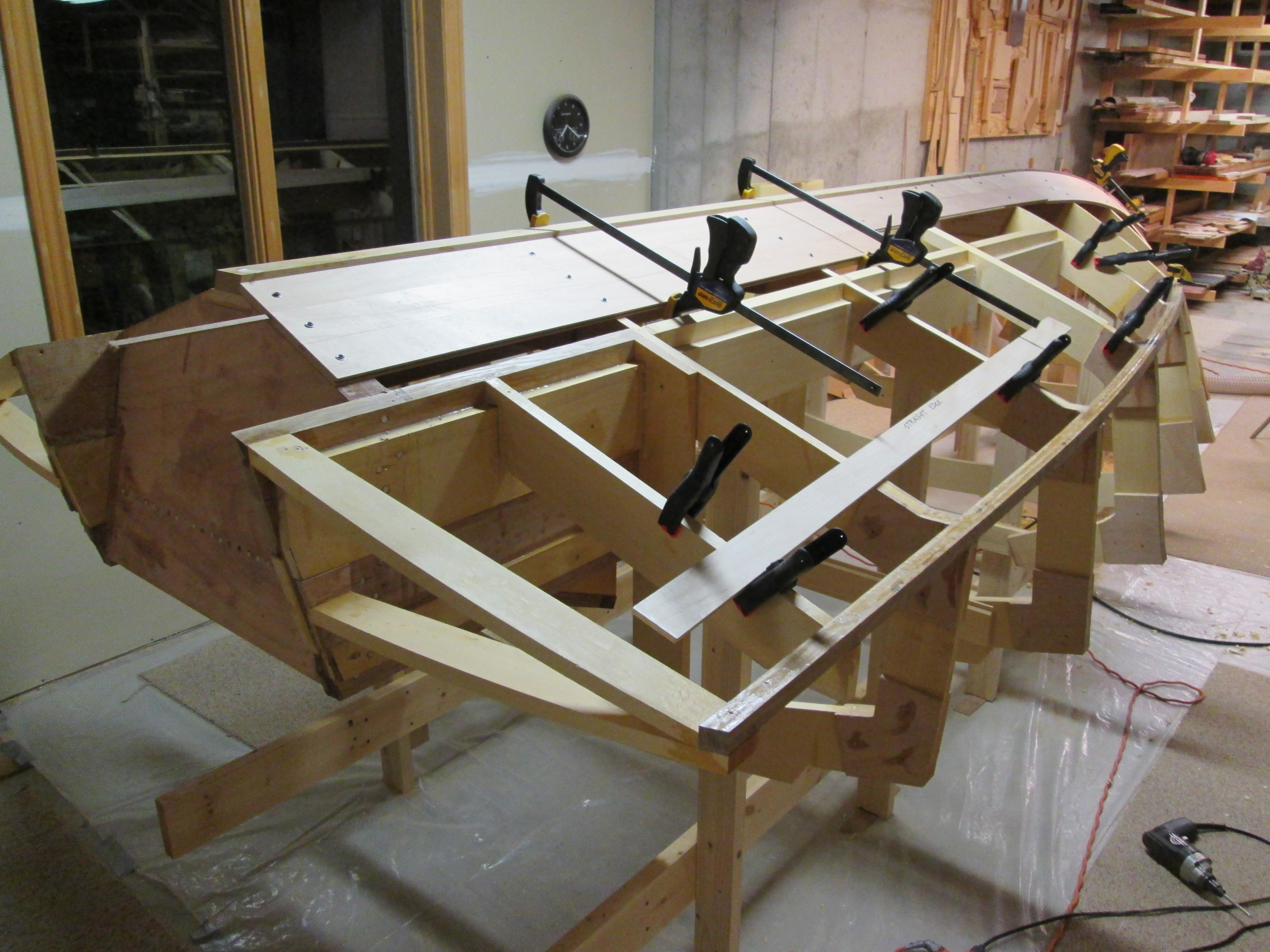 Deck planks and moldings assembled and glued.