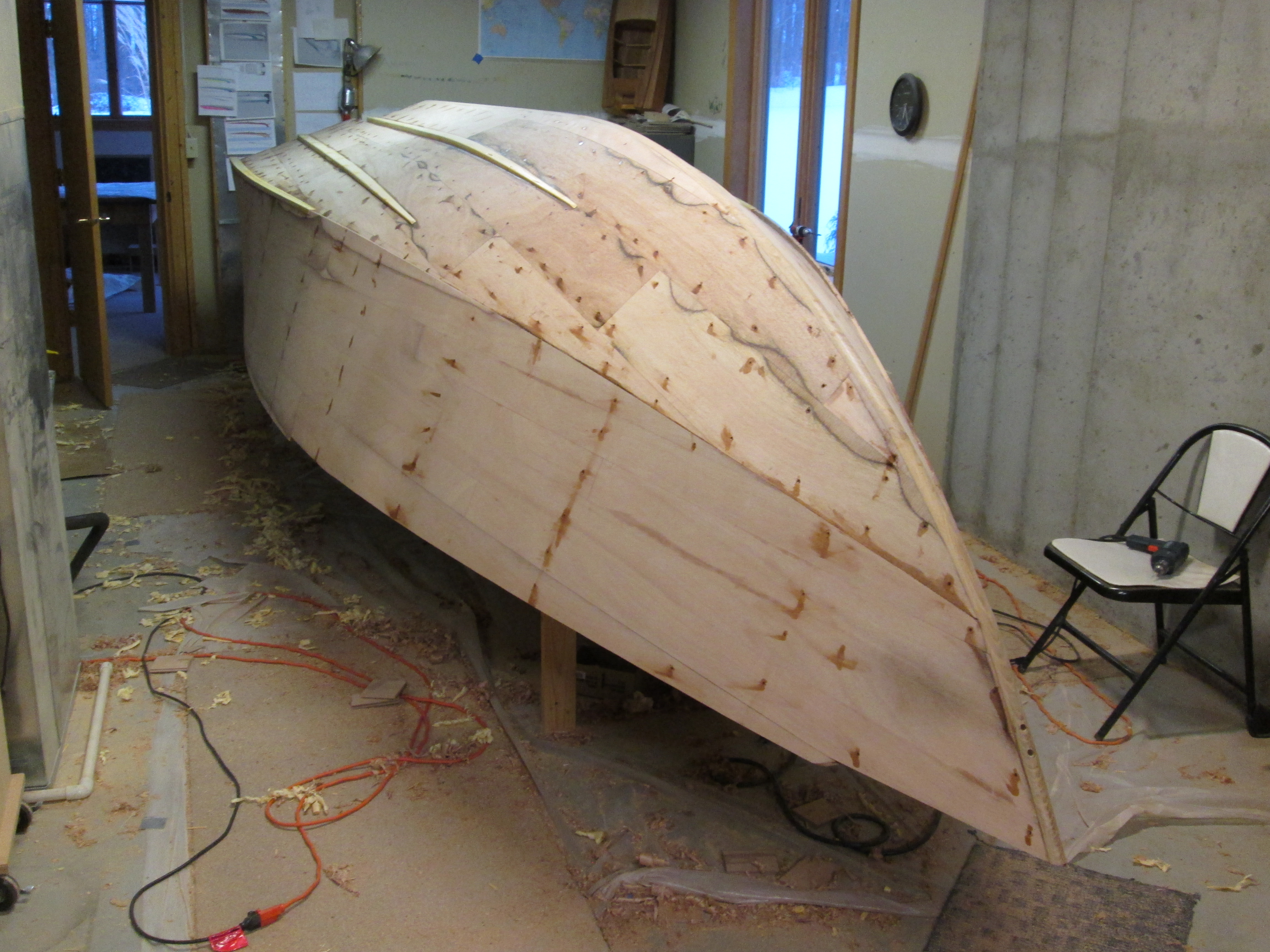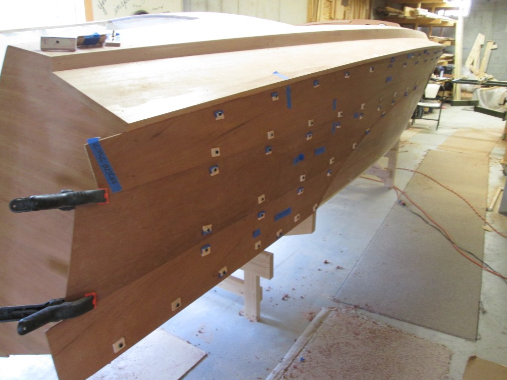 Side complete with 1/2″ T&G planks, another 1/4″ added on bottom and strakes.