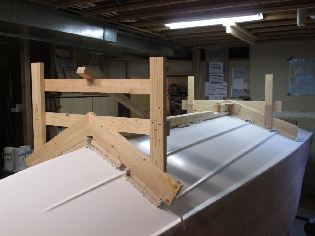 Custom cradle to hold the boat upright for the last building stage.