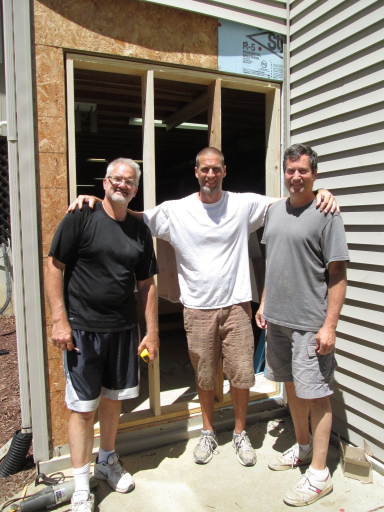 The wrecking crew from left, Todd Smucker, my Brother Joe Lehman and myself on bust-a-hole in the walkout basement day.